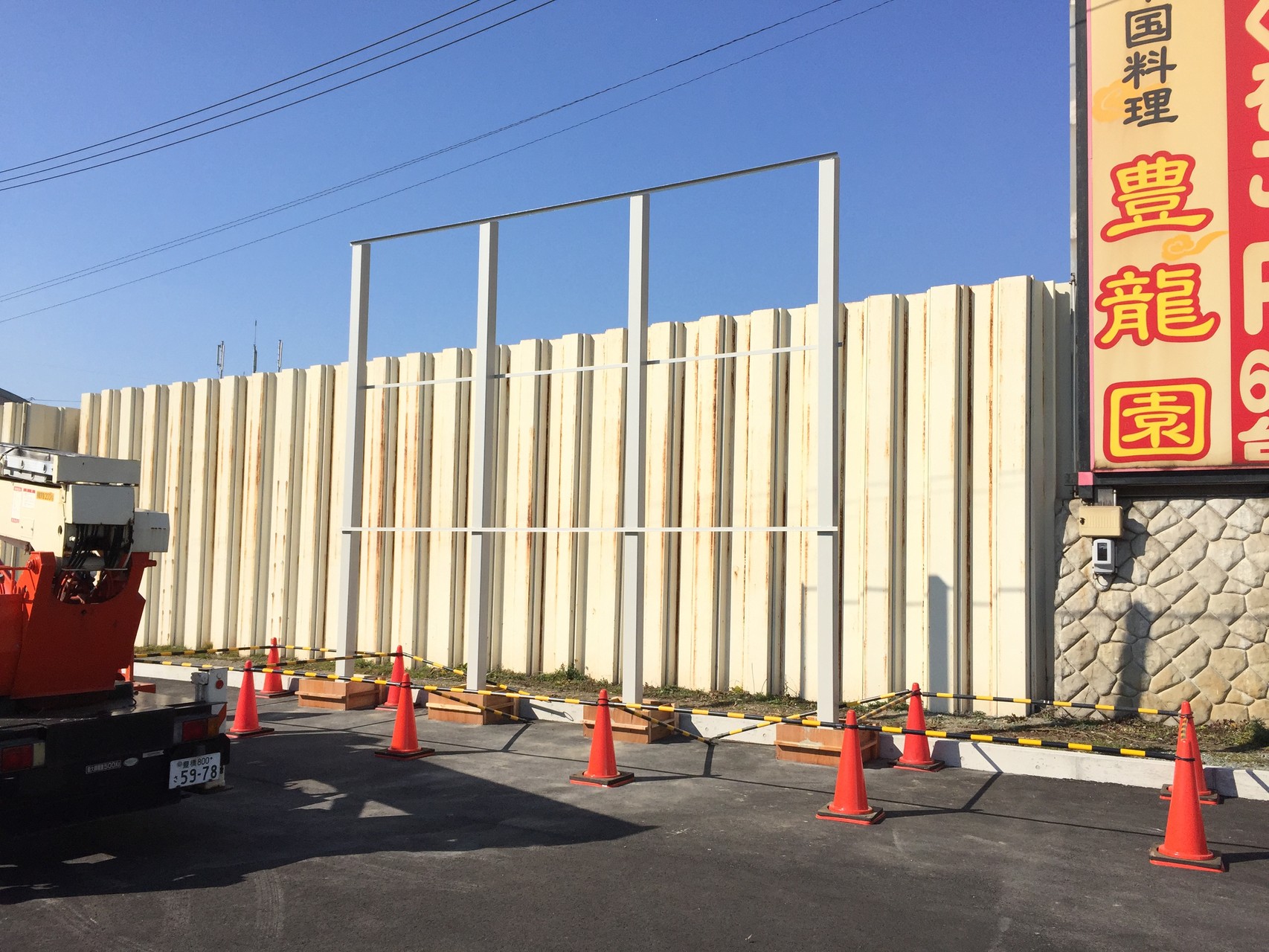 プラスチックダンボールを使い ポールパーテーションに被せる
